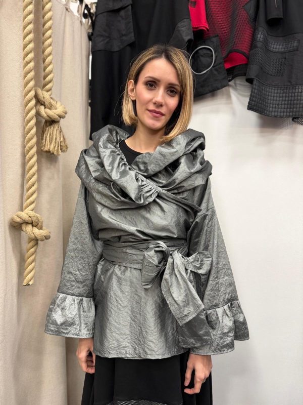 Posebnu čar daje joj bogata kragnica koja unosi dozu luksuza i profinjenosti, dok pojas omogućava strukiranje i naglašavanje siluete. Zahvaljujući pažljivo osmišljenom kroju, jakna ističe figuru i daje skladan, dotjeran izgled.