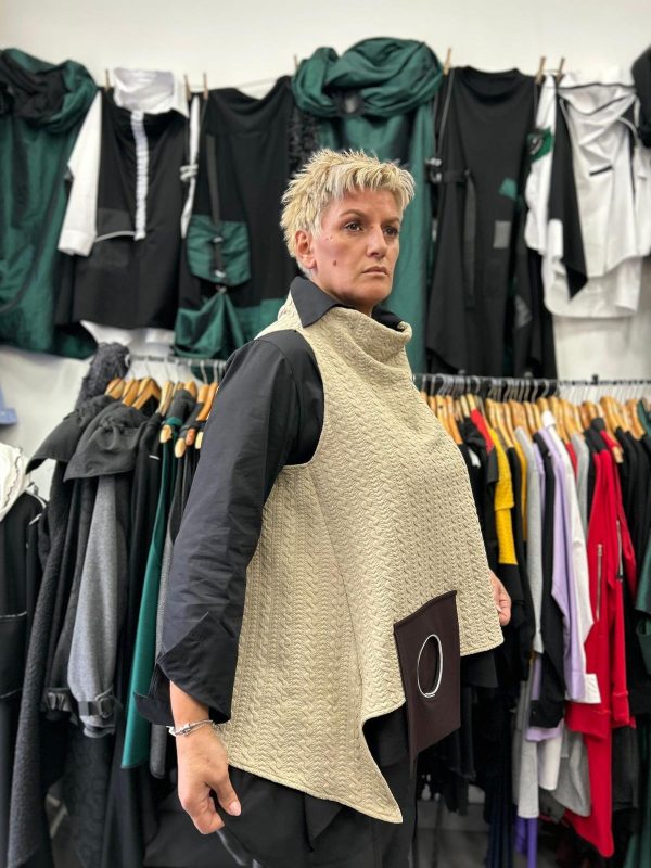 Ovaj unikatni prsluk izrađen je od kombinacije pamuka i elastina, savršeno se slaže uz sve naše modele košulja, ali i samostalno nosi svoj karakter. Ručno je oslikan te dolazi s našivenim ukrasnim džepom. Zahvaljujući svom upečatljivom kroju odlično pristaje uz razne vrste hlača. Neki naši kupci ga s lakoćom nose bez ičega ispod, kao statement komad za ljetne i toplije dane. Dolazi u jednoj univerzalnoj veličini i lijepo pada. Na slikama je slikan u kombinaciji sa našom Košuljom URBAN.