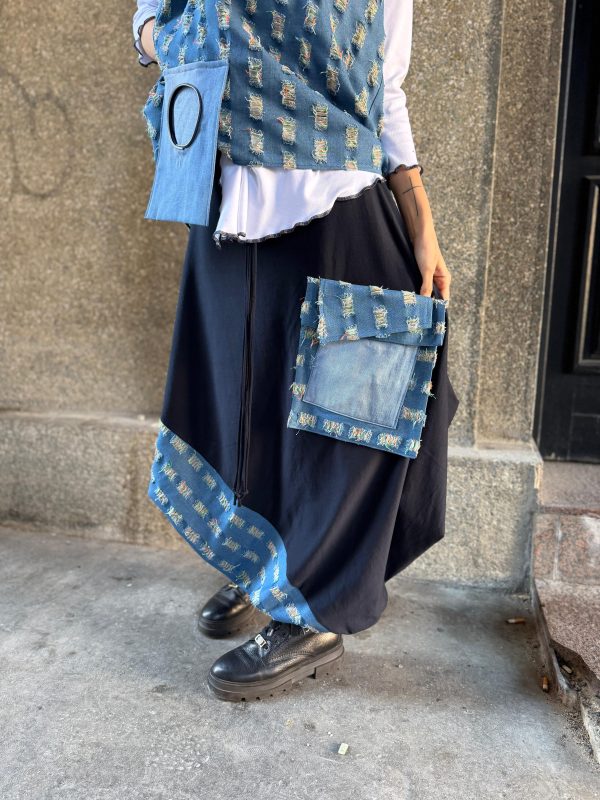 Na slici sa plavom suknjom slikali smo Prsluk Venera u istom uzorku.